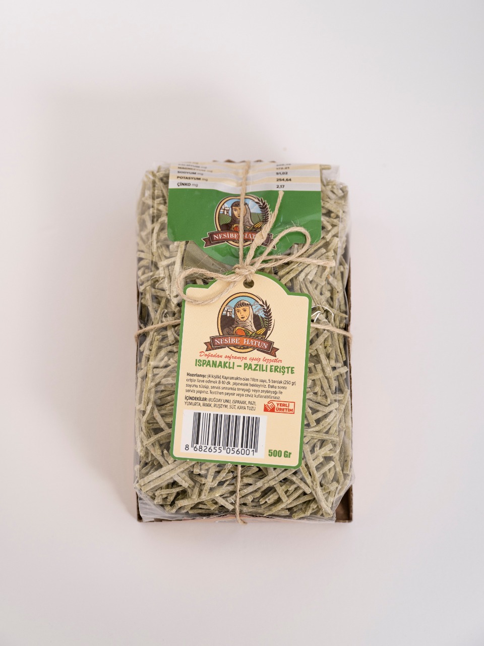 İçindekiler: Buğday unu, ıspanak, pazı, yumurta, irmik, ruşeym, süt, kaya tuzu.